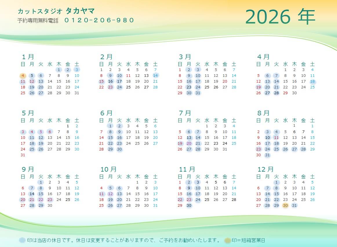 (定休日) 毎週 月・火曜日 (特別休日) 夏季 年末年始 その他臨時休業日 2026年より 月曜祝日(ハッピーマンデー)の前の日曜日を 休日とさせていただきます。 詳細は2026年営業日カレンダーをご覧ください。 ※休日を変更する場合がありますので お電話でのご予約をお勧めいたします。※ | |